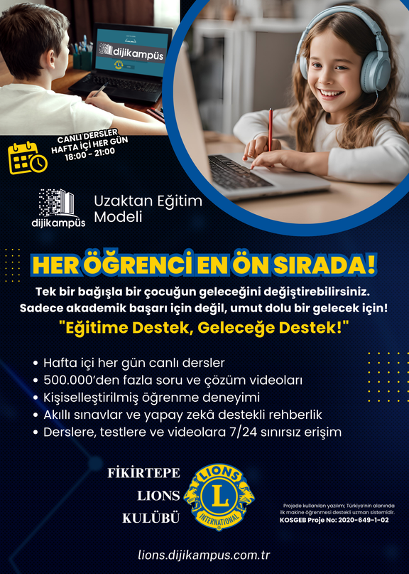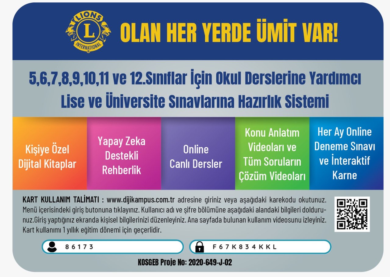 118 Y Yönetim Çevresi olarak başlatacağımız bu projemize tüm Lionların desteğiyle eğitim konusunda toplumumuza hizmet etmek amacımızı yerine getireceğiz.
